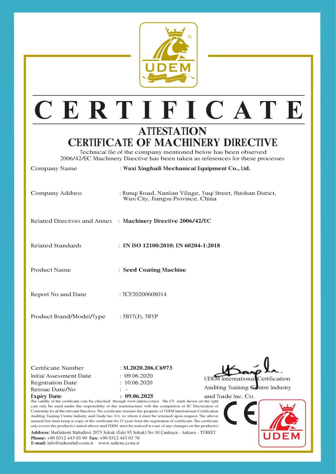 WUXI XINGBAILI MACHINERY AND EQUIPMENT CO.,LTD.